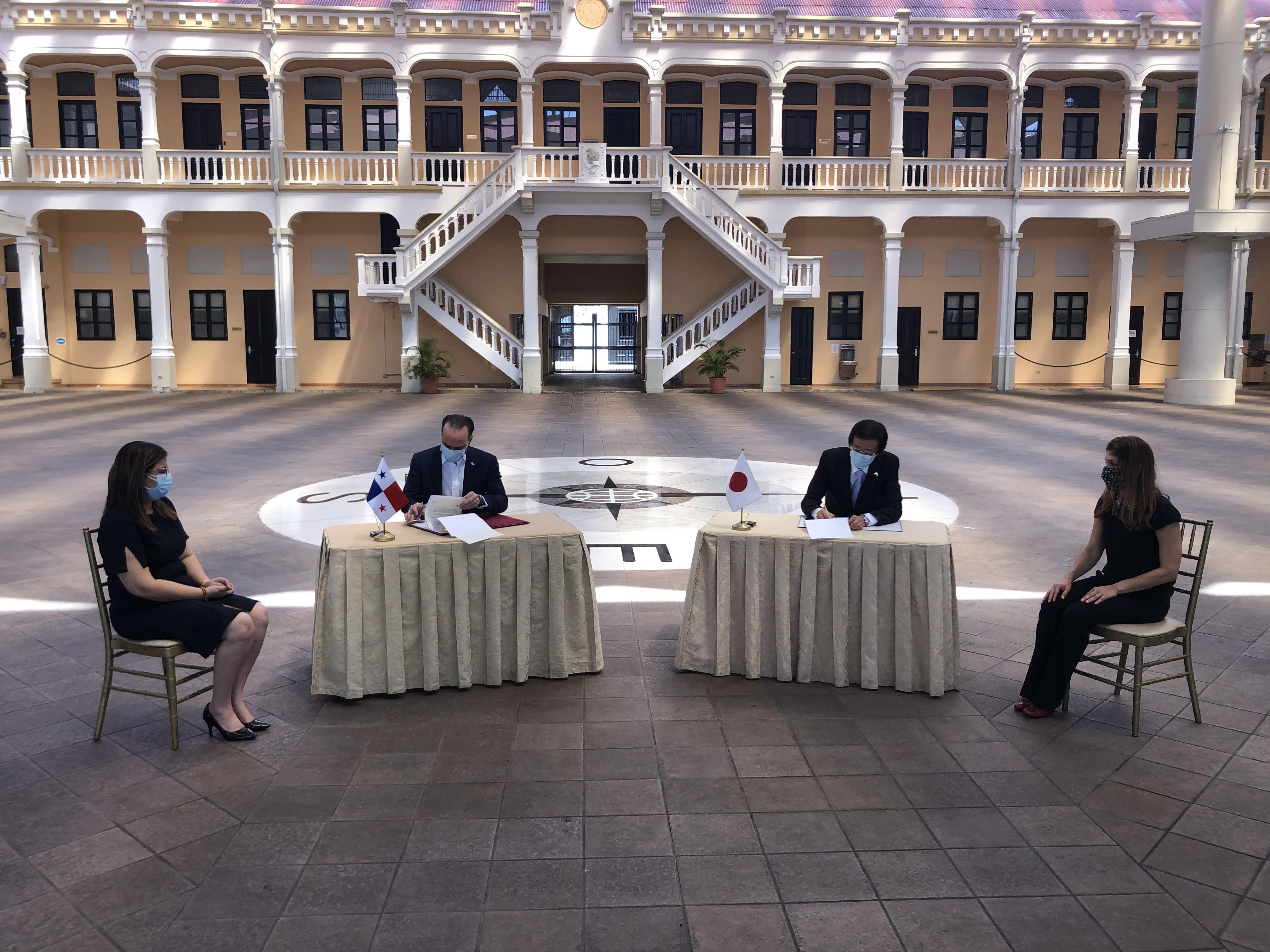 El Embajador Plenipotenciario y Extraordinario del Japón, S.E. Takashi Owaki y el Ministro de Relaciones Exteriores de Panamá, S.E. Alejandro Ferrer, hicieron el Canje de Notas relacionadas con la Cooperación Financiera No Reembolsable de Equipos Médicos y de Salud, ("Programa de Desarrollo Económico y Social"), por un monto de 600 millones de yenes (unos 5.5 millones de dólares estadounidenses).