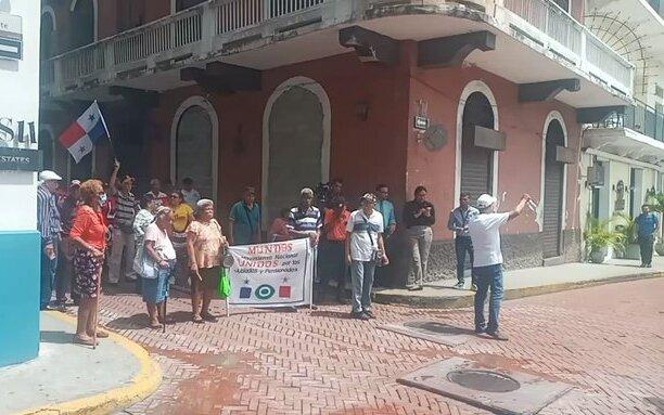 Un grupo de jubilados y pensionados, afiliados en el movimiento Mundos, en el "Día del Abuelo" protestaron en las inmediaciones de la presidencia de la República, ubicada en el corregimiento de San Felipe.