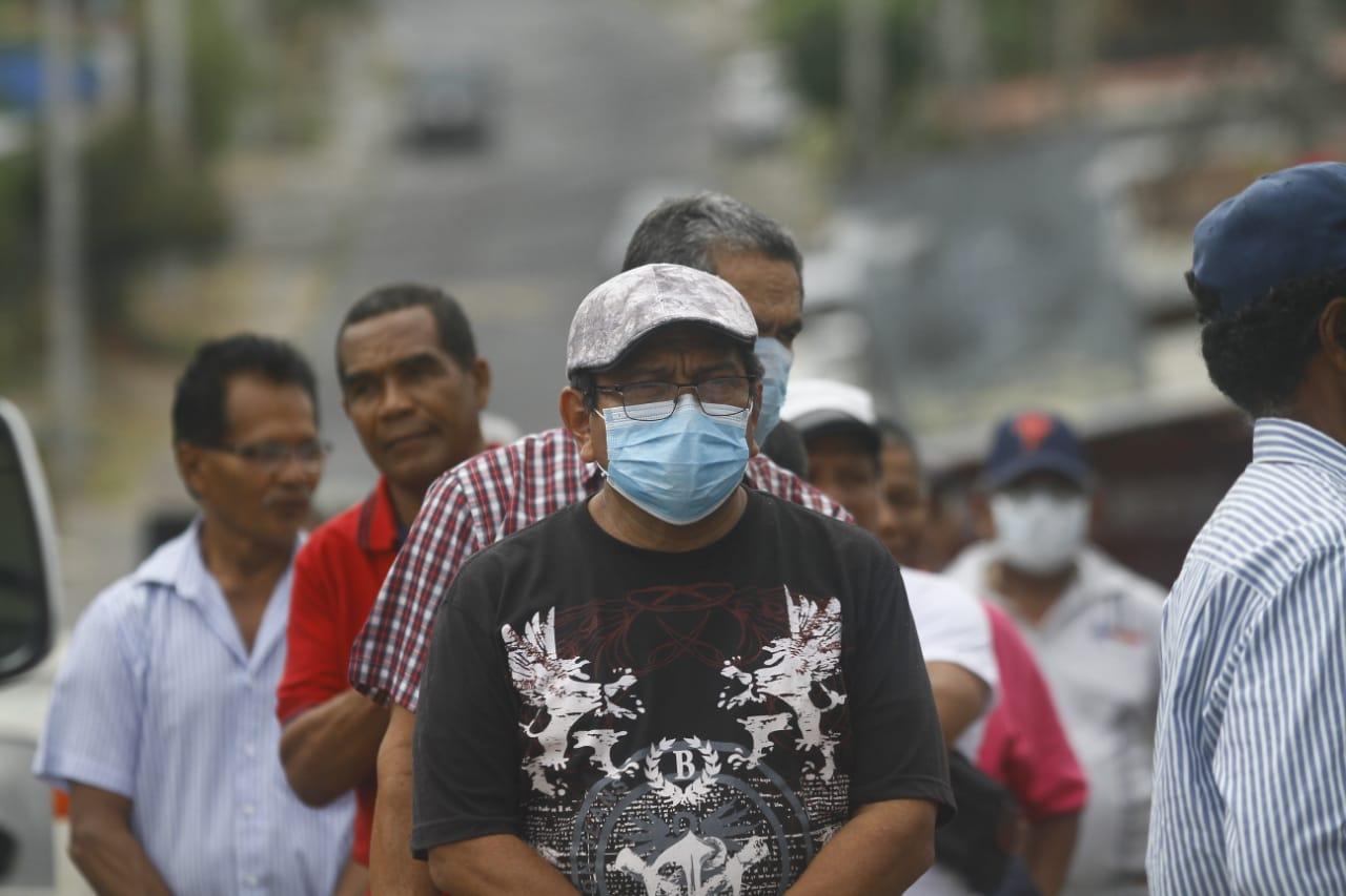 Un grupo de jubilados no guardaban distancia hoy en la parte exterior de un banco estatal, localizado en San Miguelito.