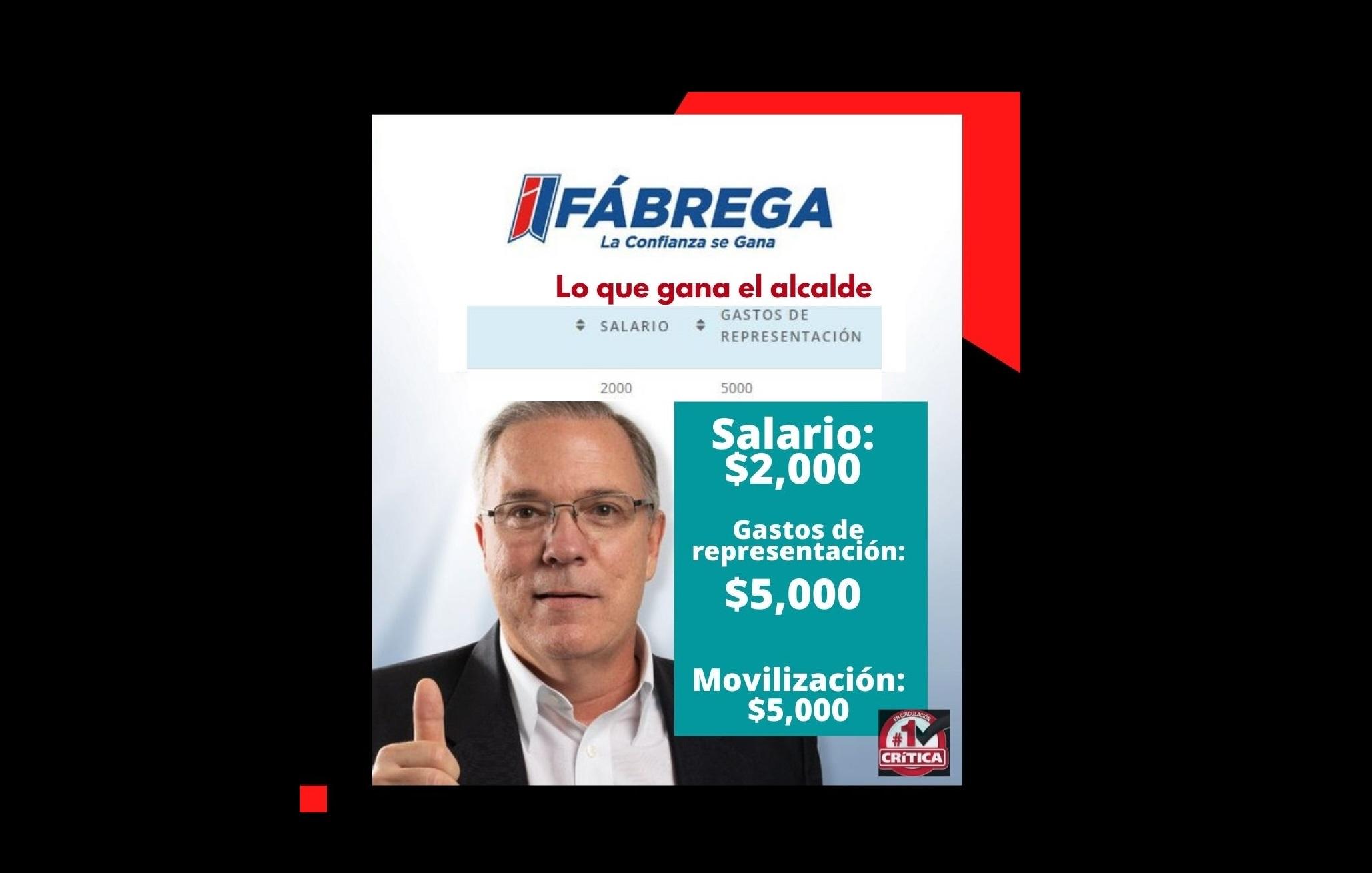 En el caso del alcalde Fábrega, sus honorarios suman 12 mil dólares mensuales, divididos en 2 mil dólares en salario, $5 mil en gastos de representación y otros 5 mil por movilización, más de lo que gana el presidente de la República, Laurentino Cortizo.