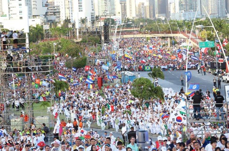 Unos 75 mil jóvenes de Panamá y de 140 países se congregaron en la misa portando las banderas distintivas de sus naciones. Ulloa exhortó a los chicos a ejecutar una “revolución de amor” bajo el cálido calor humano y el verano panameño que crean las condiciones propicias para compartir sueños, esperanzas y proyectos.