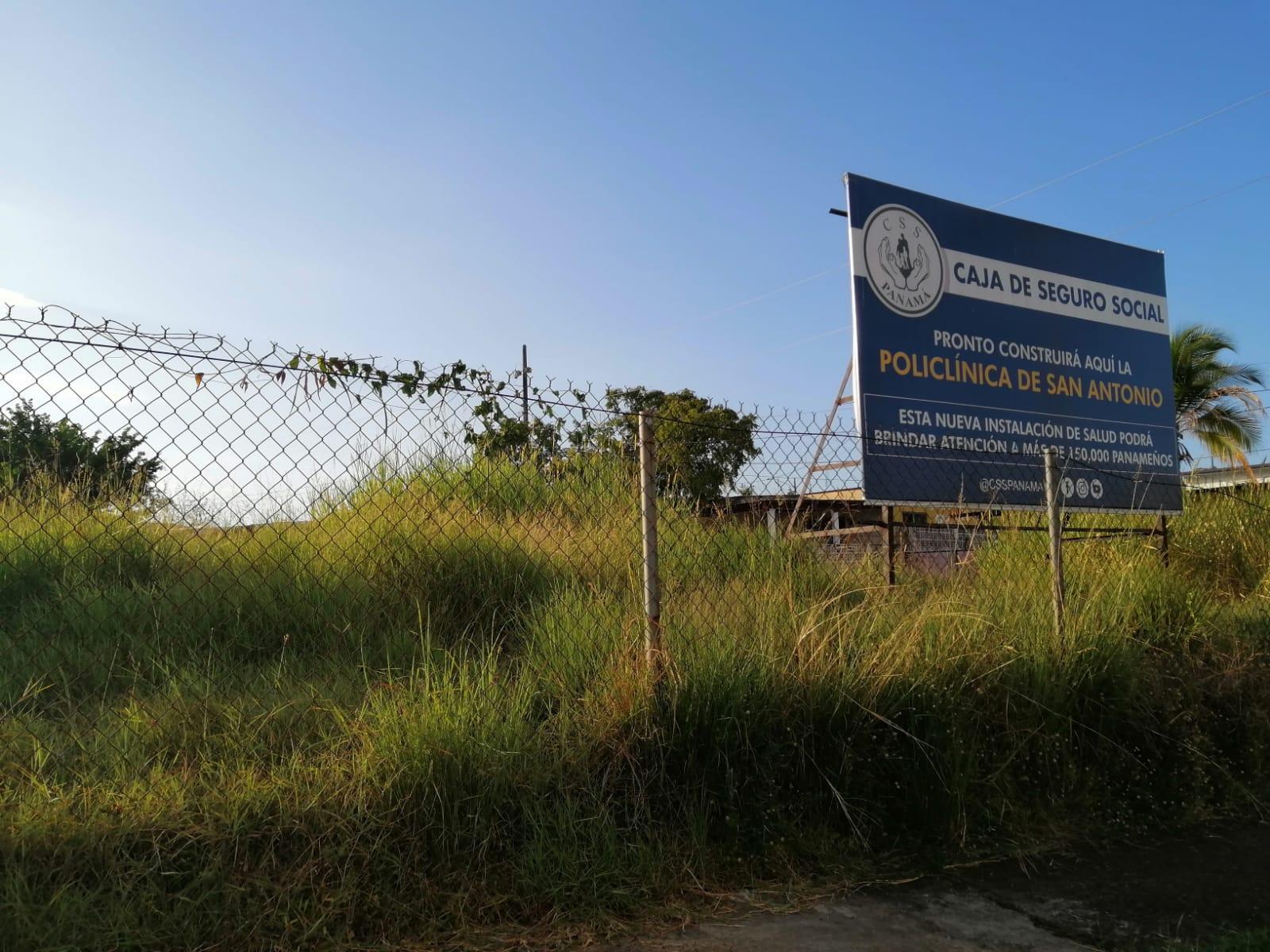 Panamá. Un proyecto de larga espera y que solo ha quedado con una valla publicitaria: "Futura Policlínica de San Antonio- CSS" en un terreno cercado e invadido de monte.