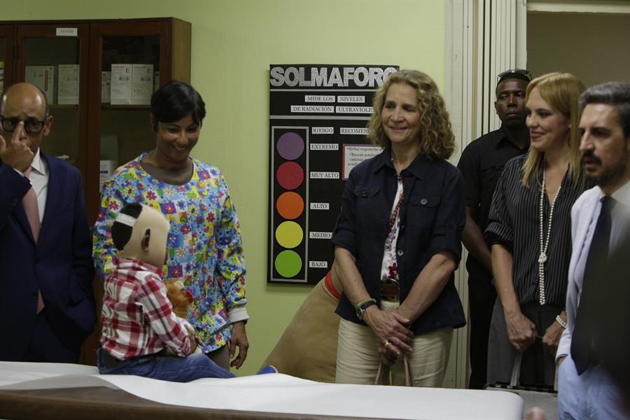 La infanta Elena de Borbón visitó este miércoles en Panamá a un grupo de niños con quemaduras graves en una unidad especial hospitalaria en la capital del país y mostró su interés por el estado de salud de los menores.