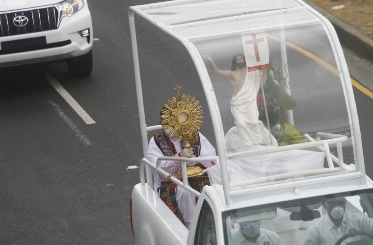 El papamóvil recorrió ayer la calles de Panamá, pero a diferencia de finales de enero de 2019 el pasajero no fue el santo padre Francisco, sino el arzobispo José Domingo Ulloa, Cristo Resucitado y el Santísimo Sacramento.