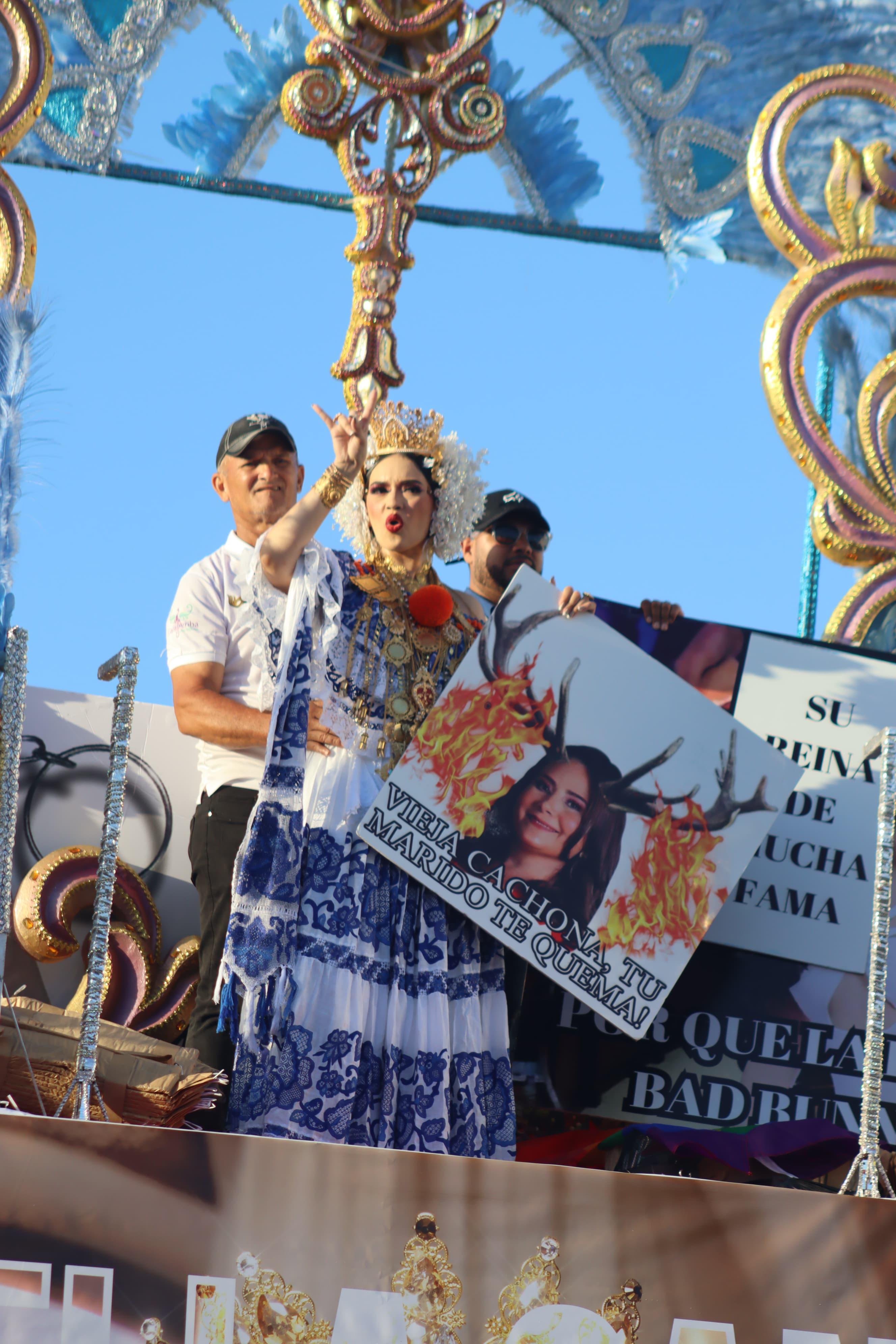 Entre tomadas y aplausos, las reinas avanzaron por las calles hasta llegar al corazón de Las Tablas, el parque Porras, donde se dieron cita para el esperado enfrentamiento.