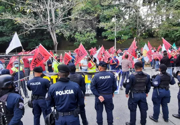 Mientras se instalaba el diálogo, delegaciones de organizaciones populares realizaron una protesta en los predios del Parlatino. En las calles se defenderá al Seguro. No más diálogos de Yo con Yo. Gobierno y empresarios corruptos que deben cientos de millones, hecho negociados y han saqueado al Seguro quieren decidir todo, destacó el Suntracs.