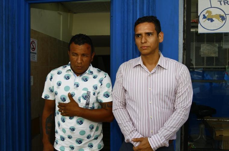 Abdiel Fuentes, quien fue agredido el lunes a patadas por el taxista Jorge Luis Bulgin Cartín, se presentó ayer al Instituto de Medicina Legal con el abogado Kevin Moncada.