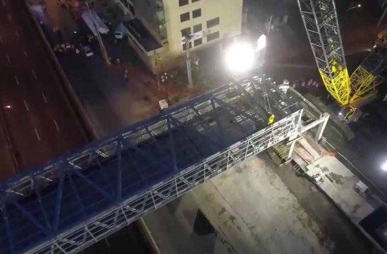 A partir de las 10:00 p.m. de hoy hasta las 8:00 a.m. del domingo se realizará el montaje de la primera fase de la pasarela o paso peatonal de estación Brisas del Golf, ubicada en la avenida Domingo Díaz, justo en la entrada de la comunidad.