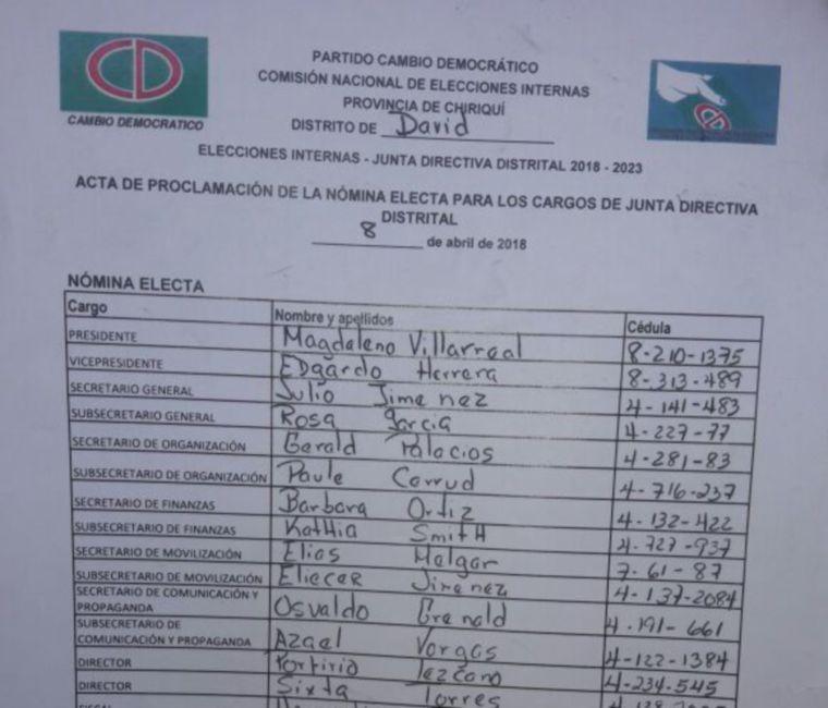 La nómina encabezada por Madgaleno Villarreal, de la facción de leales al expresidente Ricardo Martinelli, resultó ganadora ayer, durante las elecciones para escoger a la junta directiva distrital de David, provincia de Chiriquí.