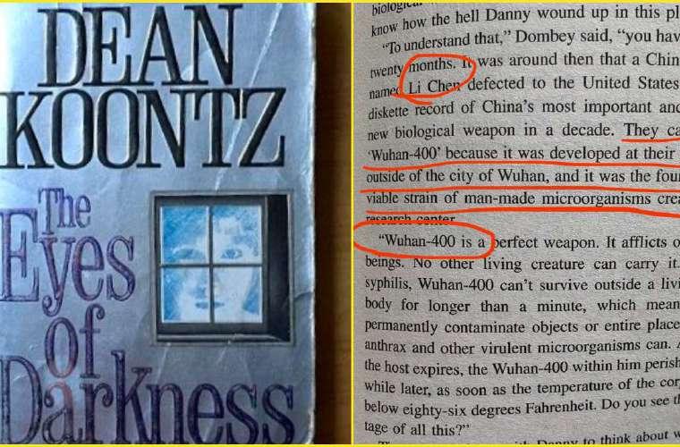 En el capítulo 39 de esta novela, “alrededor del año 2020”, un arma biológica denominada “virus Wuhan-400” irrumpe en un mundo imaginado por la pluma de Koontz. Aunque la historia de esta arma es una trama secundaria en la historia, las alusiones a una epidemia desatada por ella resultan sorprendentes, pues el autor se refiere a una neumonía expansiva.
