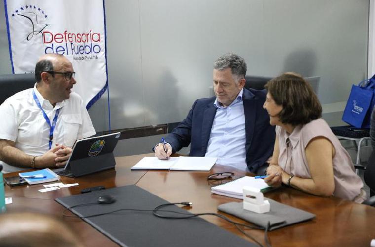 El Ombudsman estuvo acompañado por S andra Álvarez, presidenta del Comité de Elecciones; Jonathan Santana, director Relaciones Internacionales; Anna Karina Salerno, directora Unidades Especializadas, Luis Ernesto Bolívar, director de Procesos y Mejoras Continuas; y Yazmín Jiménez, directora de Relaciones Públicas.