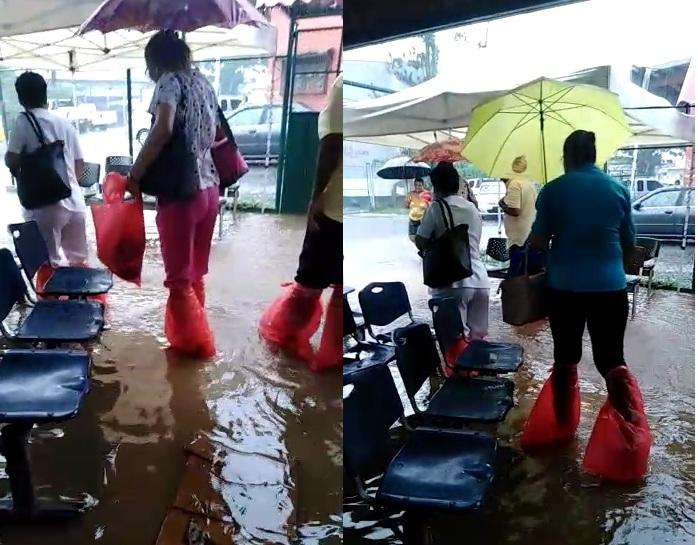 Ello debido a que la parte externa del dispensario quedó inundada, tras la intensa lluvia registrada la tarde de ayer martes.