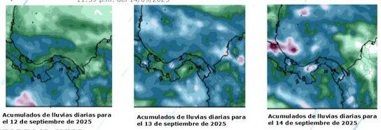 Se estiman acumulados de lluvia entre 25 y 100 milímetros diarios (litros por metro cuadrado).