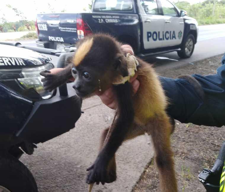 Según el reporte de la Policía Nacional se recibió una llamada telefónica, donde indicaban que en la vía Panamericana un sujeto mantenía un monito amarrado y lo estaba vendiendo, por lo que se procedió a verificar la información.