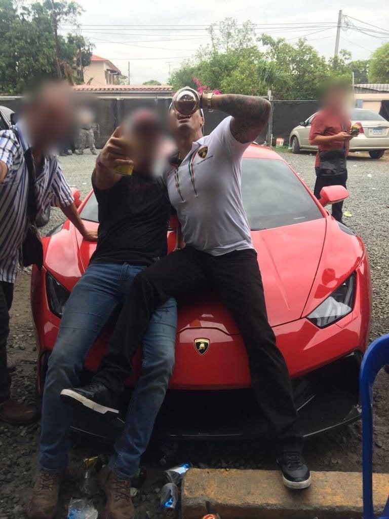 Los cabecillas Manuel Antonio Domínguez Walker y Alberto Luis Chávez Chen se paseaban en Lamborghini por las calles de La Villa y posaban recostados sobre la tapa delantera de la nave tomando caros licores a pico de botella.