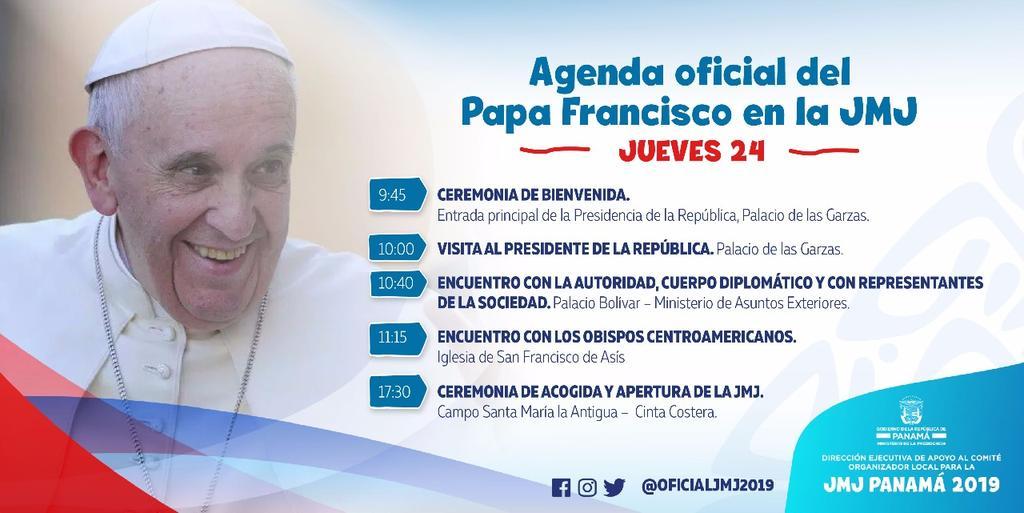 El papa Francisco pronunciará hoy su primer discurso ante las autoridades de Panamá, donde llegó ayer, miércoles para participar en la Jornada Mundial de la Juventud, y también escuchará al presidente Juan Carlos Varela.