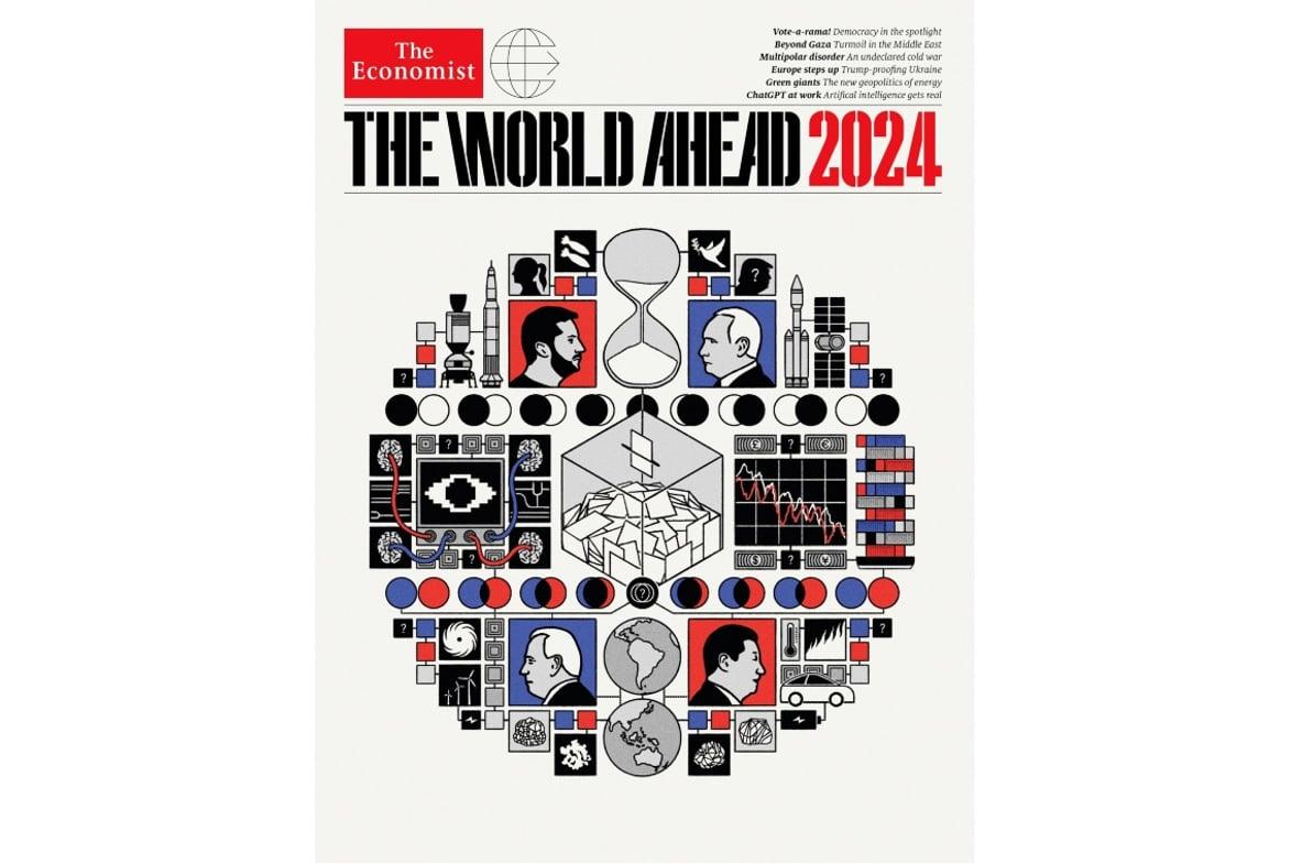 La publicación británica The Economist, propiedad de las históricas dinastías Rothschild y Agnelli, anunció sus previsiones para el año 2024. La revista recurre a sus ya clásicas y crípticas portadas, en las que, con profusión de simbolismos, deja entrever los deseos y preocupaciones de los sectores financieros transnacionales a los que representa.
