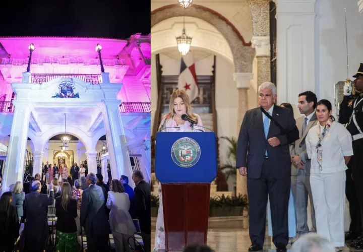 La Presidencia de la República se iluminó de rosa y celeste al iniciar la campaña “Con Paso Firme en la Lucha contra el Cáncer”, que busca crear conciencia sobre la prevención del cáncer de mama y próstata durante todo el mes de octubre.
