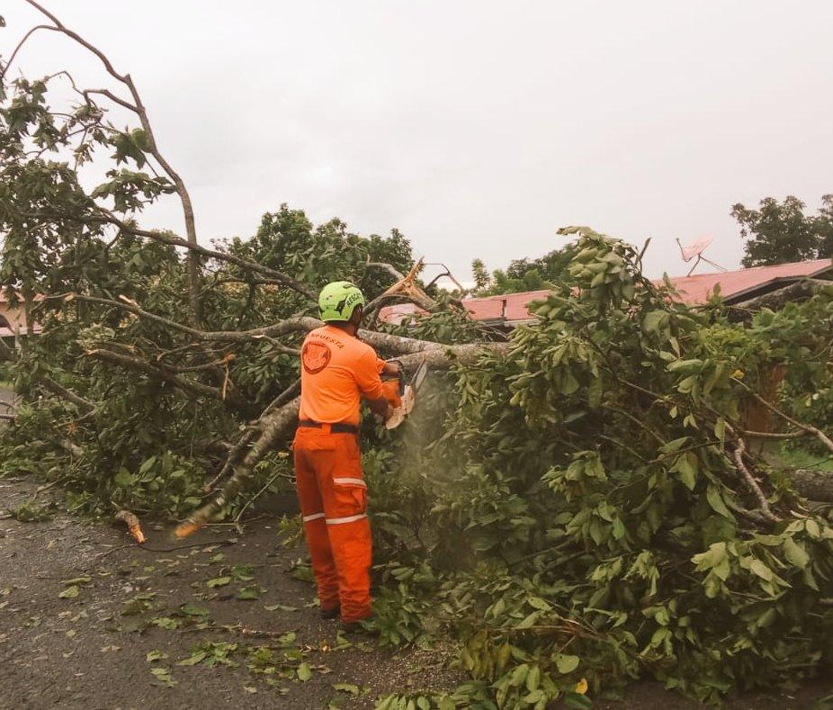 Se reportó de la caída de unos 27 árboles sobre la vía, viviendas, muro perimetral y tendidos eléctricos, situaciones que fueron atendidas por personal de la institución.