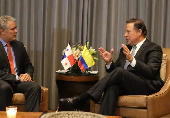 Panamá- Previo a los actos de transmisión de mando en la República de Colombia, el presidente de Panamá, Juan Carlos Varela y la vicepresidenta y canciller, Isabel de Saint Malo de Alvarado, sostuvieron una reunión bilateral con el presidente electo de ese país, Iván Duque.