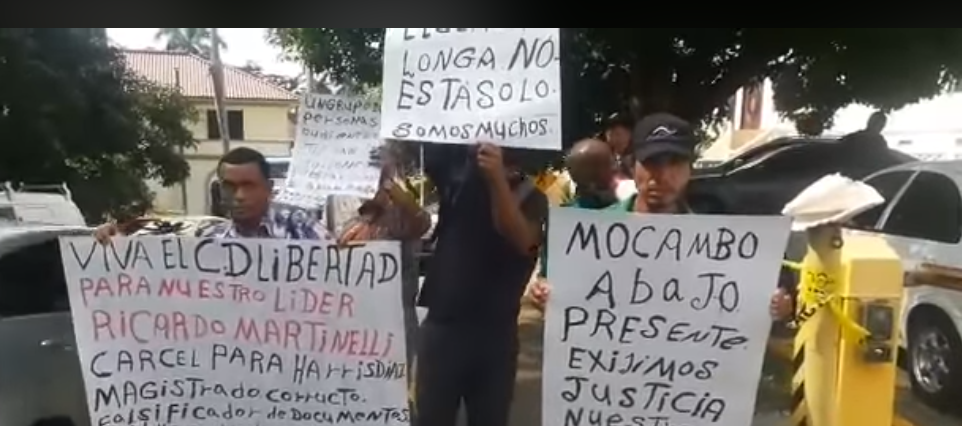 Uno de los manifestantes portaba una pancarta que dice: "Viva el CD... Libertad para nuestro líder Ricardo Martinelli".