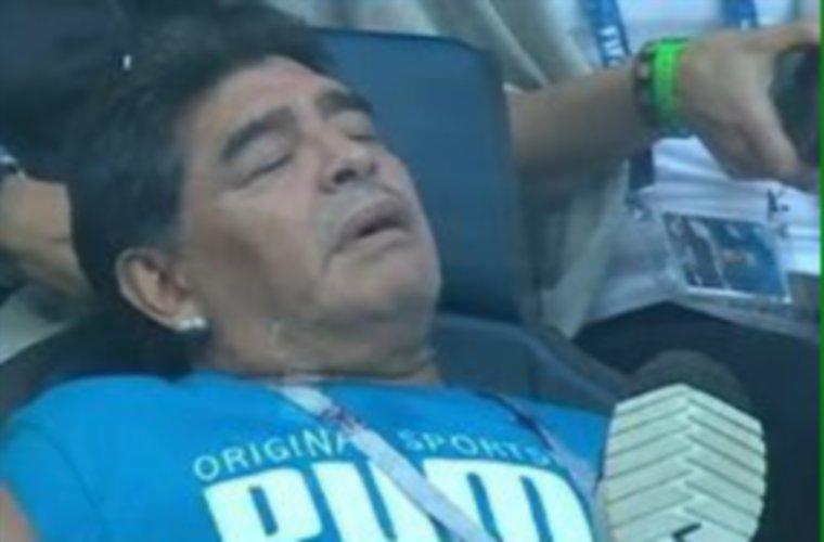 Diego Armando Maradona armó su “show” en San Petersburgo: se colgó eufórico del palco, se durmió, bailó cumbia con una nigeriana, abrió los brazos al cielo y lo tuvieron que sacar del estadio en deplorables condiciones tras la dramática victoria de Argentina 2-1 ante Nigeria.