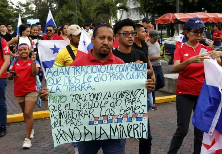 En las pancartas se podían leer mensajes como "No a la mina. Queremos derogación de la ley" y "Nito (apodo del presidente), el oro de Panamá es verde".