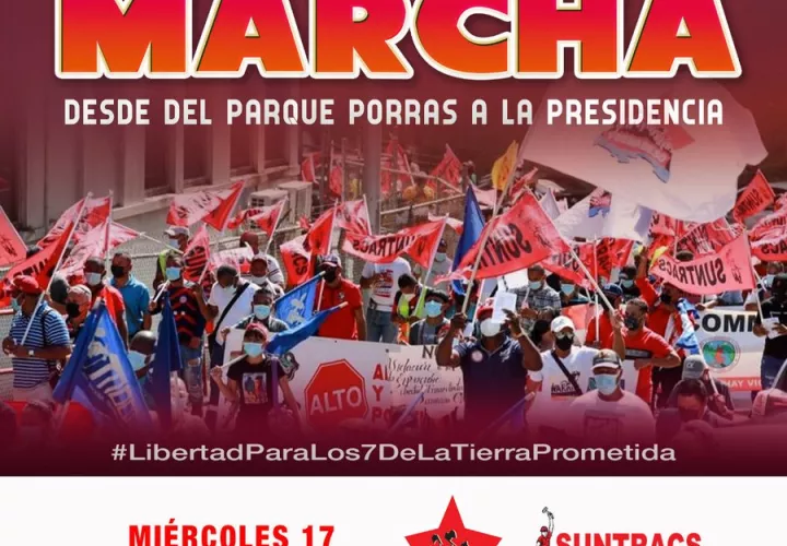 Hoy, miércoles, miembros del Frente Nacional por la Defensa de los Derechos Económicos y Sociales( Frenadeso), Conusi y otras organizaciones marcharán hasta la Presidencia de la República, San Felipe, para exigir la liberación de los 7 detenidos de Tierra Prometida.