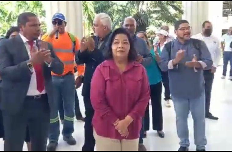 Acompañada por miembros del Suntracs y de colectivos como Frenadeso, Gordón acudió a la sede del Tribunal Electoral, donde se gritaron consignas a su favor.