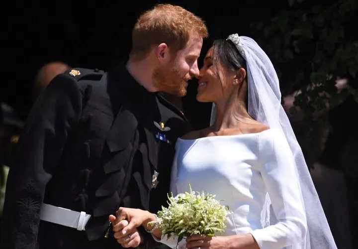 Tras la ceremonia, Harry y Meghan se subieron a un carruaje abierto que data de 1883, sobre el que hicieron un recorrido de media hora para saludar a los fanáticos y se dieron un beso ante miles de personas que esperaban poder verlos de cerca.