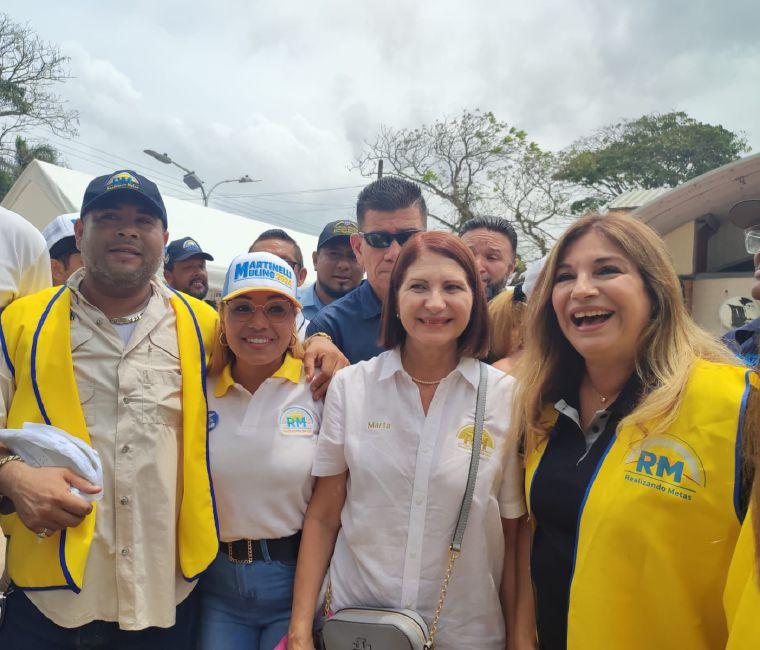 Marta de Martinelli, quien llegó acompañada de Maricel Mulino, esposa del candidato presidencial de RM y Alianza, aseguró que durante el próximo gobierno de José Raúl Mulino se continuará los proyectos educativos de Martinelli, entregando laptop, libros y útiles escolares. Juntos con Mulino volveremos a tener una mejor calidad de educación vinculada al empleo.añadió.