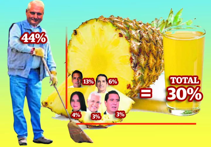 El candidato más cercano a Martinelli o segundo en la intención de voto espontáneo es Ricardo Lombana, pero muy atrás con 13% de apoyo de los encuestados, le sigue Rómulo Roux con 6%, Zulay Rodríguez con 4%, José Blandón con 3%, y Martín Torrijos con 3%. Es decir todos esos aspirantes se juntan y suman 30% y "El Loco" les saca una ventaja de 14%.