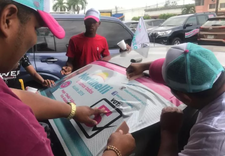 Activistas de la campaña de Ricardo Martinelli para la Alcaldía de Panamá y para diputado del circuito 8-8 no paran sus movilizaciones. Ayer, más de 500 vehículos fueron rotulados con leyendas alusivas a la campaña a alcalde de Martinelli en las sedes de los partidos Cambio Democrático y Alianza.