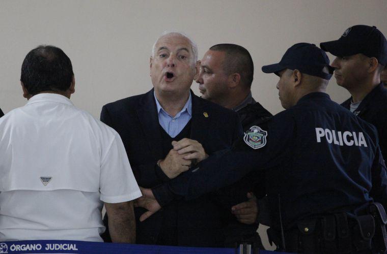 "Varela ‘ta caga'o"; "Me quiere matar", gritó Martinelli al ser empujado por los más de 10 policías que lo rodeaban para sacarlo de la sala de audiencias y trasladarlo hasta El Renacer.