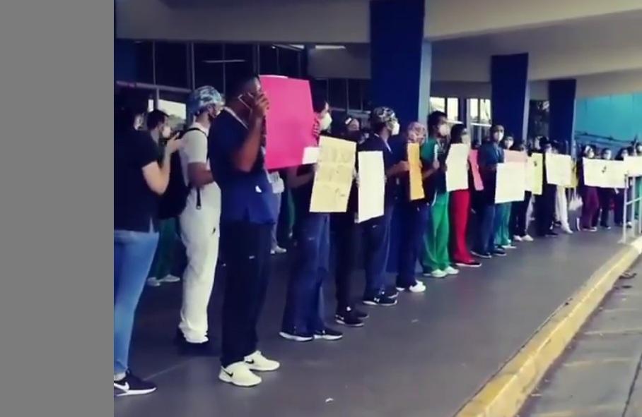 Los médicos del Seguro Social se situaron a la entrada principal del hospital y protestaron de forma paífica debido a que no han recibido todavía la vacuna contra la Covid-19.