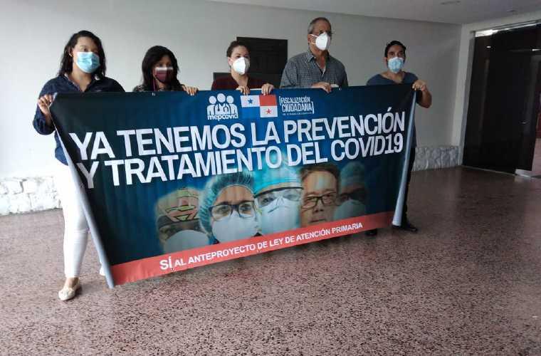Los Médicos Panameños Contra la Covid-19 (MEPCOVID) protestaron pacíficamente ayer frente a la Asamblea Nacional, en una cruzada para que los diputados den urgencia notoria al anteproyecto de ley que garantiza atención primaria a los contagiados con el coronavirus.