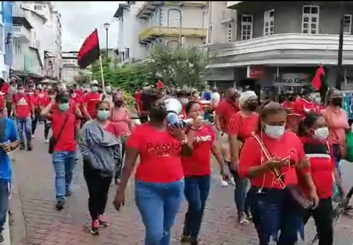 Este grupo de panameños(as), vestidos en su mayoría de rojo y con pancartas gritan consignas en contra del Gobierno Nacional y reclaman un techo digno.