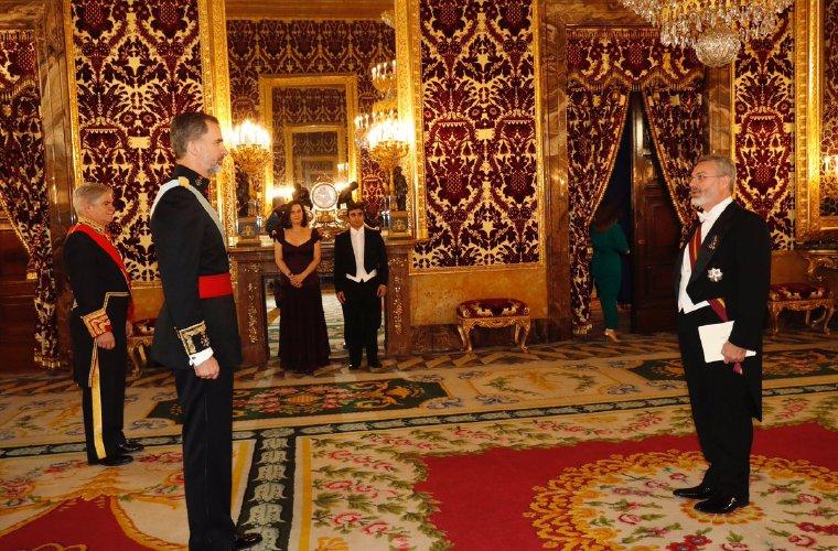 El embajador fue nombrado para el cargo en marzo pasado. Henríquez se desplazó desde el Ministerio de Asuntos Exteriores hasta el Palacio Real, en el centro de Madrid, en carrozas de época, siguiendo una ceremonia que se remonta al siglo XVIII.