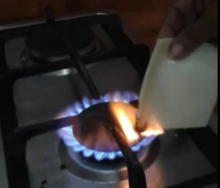 A través de un video difundido en redes, una mujer mostró cómo al poner el supuesto queso a fuego directo no se derretía, por el contrario, cambia de color blanco a negro.