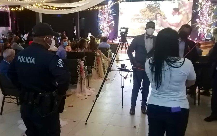 EtiquetasDurante operativos en Pedregal la #FTCSanitaria y personal del @MINSAPma, sorprenden a más de 100 personas que estaban participando en la celebración de una boda en un templo evangélico, violando las medidas de bioseguridad. #ProtégetePanamá pic.twitter.com/cCEIons9sO — Ministerio de Seguridad Pública de Panamá (@MinSegPma) February 12, 2021
