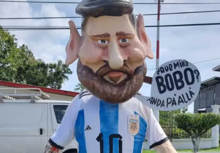 Víctor Álvarez, el artista plástico y muralista que cada año confecciona los muñecos de año viejo, tiene uno de "Leo" Messi con su famosa frase ¿Qué miras bobo? ¡Anda pa' allá!
