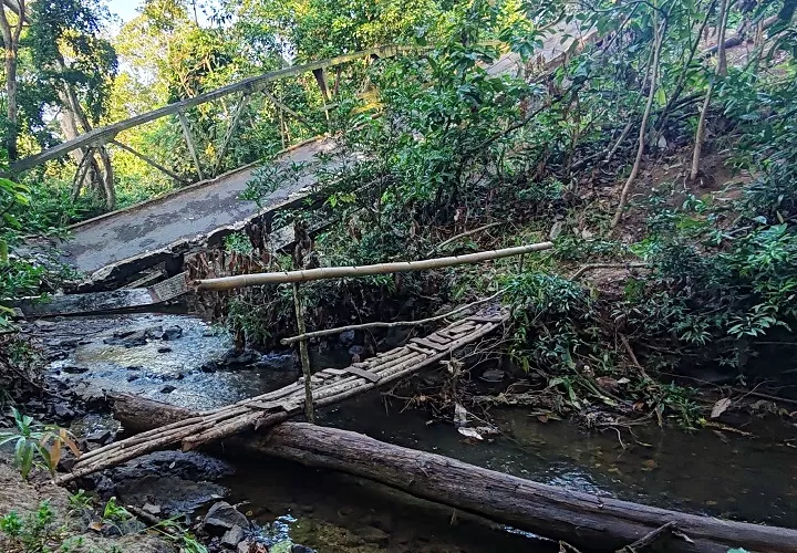La construcción de un puente provisional sobre el cauce del río Perequeté, utilizando troncos y varas de árboles, ha sido la solución adoptada por vecinos del corregimiento de Villa Carmen de Capira, luego de que, debido al sobrepeso de un camión, colapsara el puente vehicular.