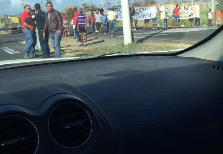 Moradores de Villa del Caribe, provincia de Colón, protestaron hoy porque se oponen al cambio del sistema de luz prepago y exigen plazas de empleo en Minera Panamá.