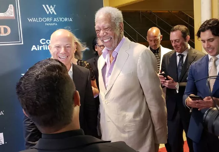 Muy sonreído con todos. Así fue la llegada del ganador del Oscar, Morgan Freeman, a las esclusas de Miraflores para estrenar el documental "Panama Canal A Land Divided - A World United".