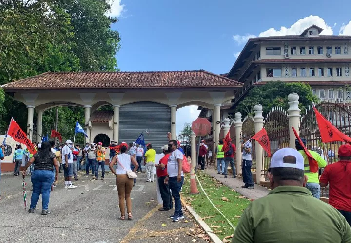 Los manifestantes, entre obreros de la construcción, asociaciones docentes y grupos de campesinos, profesionales y estudiantes, gritaron consignas contra el presidente Laurentino Cortizo y el director de la CSS, Enrique Lau Cortés.