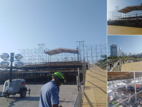 Como parte de las acciones que conlleva la visita de un Jefe de Estado, el Ministerio de la Presidencia licitó y adjudicó los trabajos de montaje y desmontaje de las 2 Mega Estructuras desde las cuales el Papa Francisco se dirigirá a más de 700 mil personas entre nacionales y extranjeros en la Cinta Costera y en Metro Park.