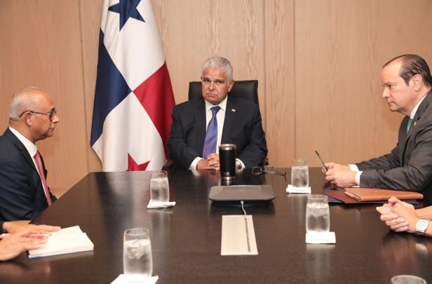 El presidente José Raúl Mulino recibió este jueves en su despacho al secretario general de la OEA, Albert Ramdin, con quien evaluó la situación geopolítica del hemisferio y los esfuerzos del organismo multilateral en defensa de la paz, la prosperidad, la democracia y la no discriminación.
