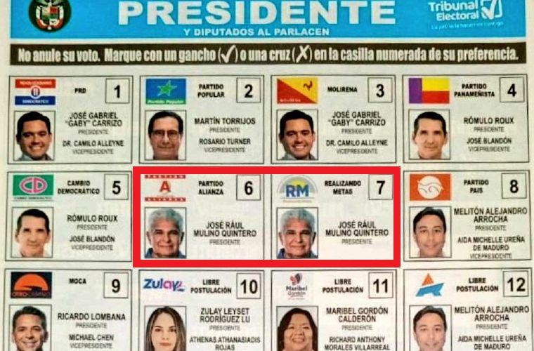 El Tribunal Electoral de Panamá inició ayer las pruebas para la impresión de al menos 3 millones 4,083 de papeletas para la elección presidencial e incluye las fotos de José Raúl Mulino en las casillas 6 y 7 como candidato de los partidos Realizando Metas y Alianza.