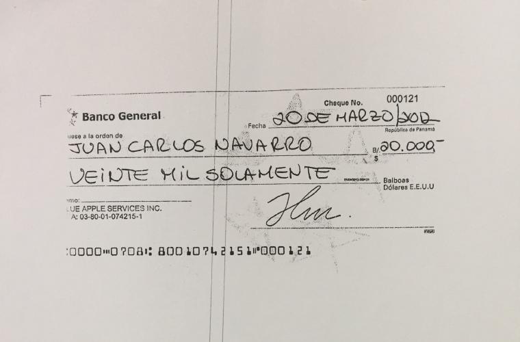 El 30 de mayo de 2013 se envió un informe completo al Tribunal Electoral de todas las donaciones recibidas hasta ese momento por Navarro, mismo que incluía copia del cheque recibido de Blue Apple Services para su revisión y auditoría correspondiente.