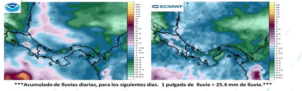El IMHPA informa que se esperan posibles acumulados de lluvias por día entre 15 y 70 milímetros (1 mm = 1 litro de agua por metro cuadrado).